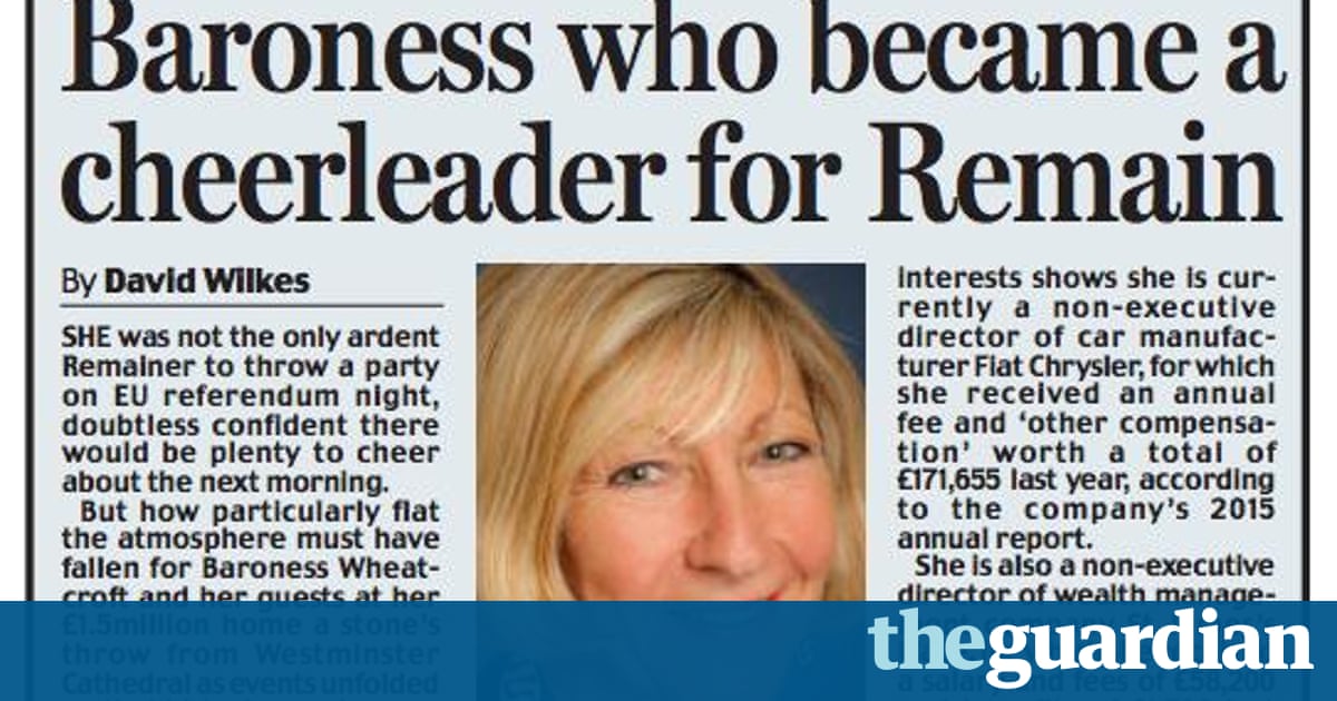 “Step forward, Patience Wheatcroft, the Baroness of Blackheath and former Editor-in-Chief of the Wall Street Journal Europe. She proposes that her fellow, so-called peers of the realm should overturn the referendum verdict. (So) her suggestion (is) that a few hundred appointed cronies (should) upturn a decision of the people (I mean, natives). Everything that is disgustingly cosy, self-regarding, privileged, corrupt and unaccountable about the way Britain is governed is represented by the House of Lords. The idea that it should claim a right to override the hoi polloi, shows a complete failure to understand what has happened. Patience Wheatcroft wins the Marie Antoinette prize for obliviousness if she thinks that she and her fellow Ladies and Lords can save Britain in Europe by reversing the referendum. Brexit does not just mean Brexit, it means the tumbrils are out for the Lordships’ house as well.”